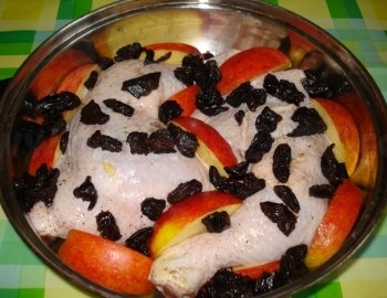 Окорочка с яблоками и черносливом