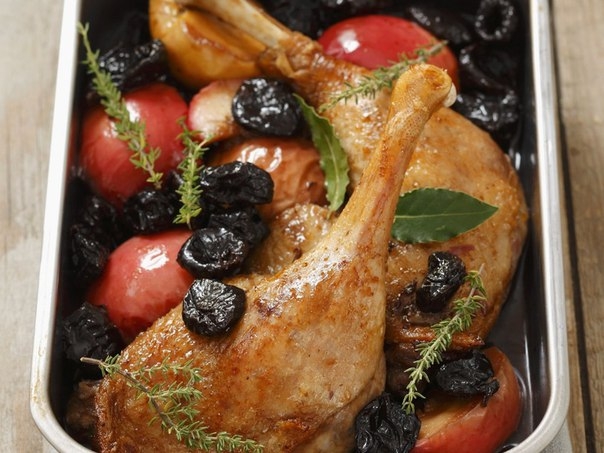 Утиные ножки с яблоками и черносливом