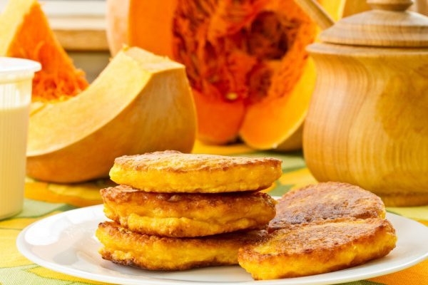 Оладьи из тыквы – красивые, вкусные и полезные. Их можно подавать вместе со сметаной или жидким медом.