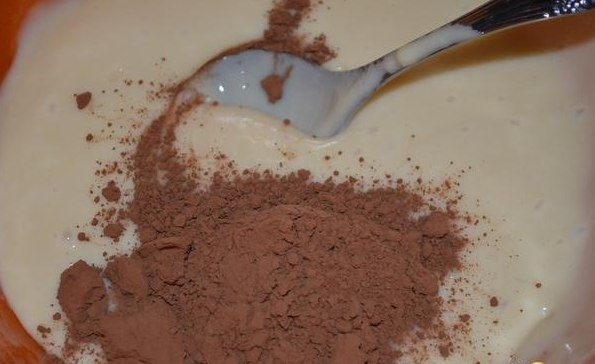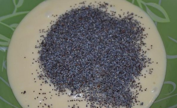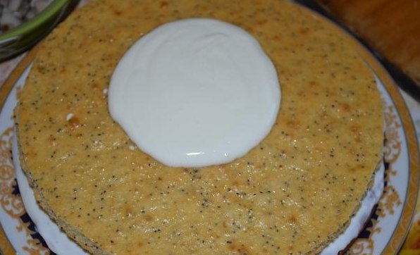 3. Отделить одну треть теста, добавить мак, перемешать. Это первый корж, выпечь. В остальное тесто добавить какао, перемешать. Разделить темное тесто пополам, в одну часть добавить рубленные (не мелко) орехи. Выпечь еще 2 коржа (один темный с орехом, другой темный без всего). Получится 3 коржа: белый с маком, темный с орехом и темный простой. Остудить коржи. Выпекать коржи при 180 С.