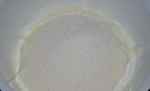 2. Перемешать сметану с сахаром для крема (не взбивать). Убрать в холодильник.