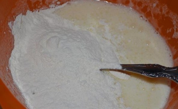 1. Для теста: взбить яйца, сахар и сметану, добавить соду и муку. Убрать в холодильник на 20 минут.