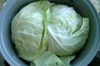 С белокочанной капусты, возьмите несколько листьев, закройте ими все овощи. Посолите по вкусу, если соли не достаточно. Закройте крышку и дождитесь звукового сигнала.