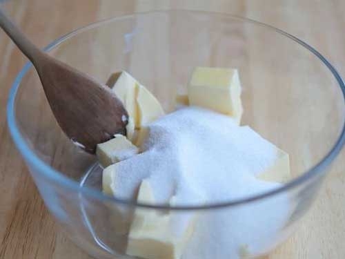 Приготовление начинаем с того, что в размягченное масло с маргарином добавляем сахар и все перемешиваем (можно миксером).