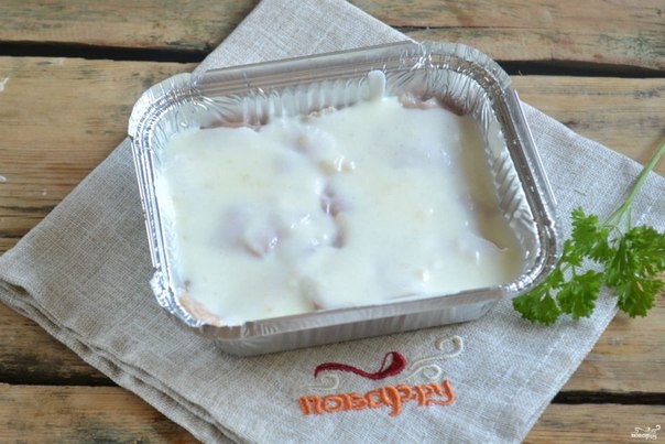 Куриная грудка под соусом "Бешамель" готова. Подавайте её горячей.