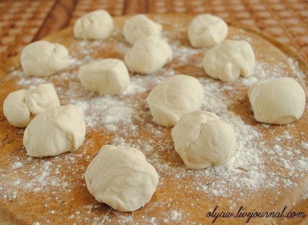 3. Тесто достать из холодильника, еще раз вымешать, затем поделить на кусочки весом по 45 граммов.