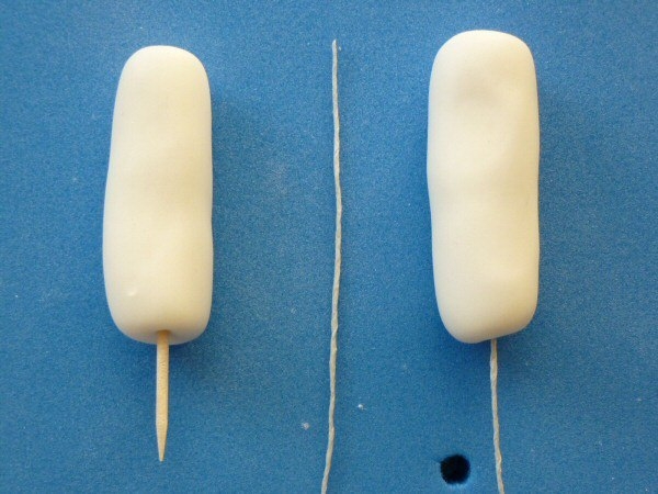 Берется проволока длиной около 8 см и обматывается тонко раскаченной полоской из мастики - получится пестик.