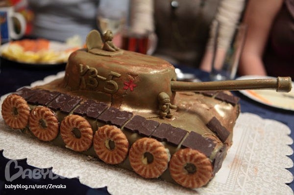 Торт в виде танка сразит наповал… в хорошем смысле, конечно! Симпатичный танчик можно соорудить всего за 15 минут из готового печенья и плитки шоколада. Так что даже утром 23 февраля Вы успеете приготовить вкусный, оригинальный сюрприз ко Дню Защитника!