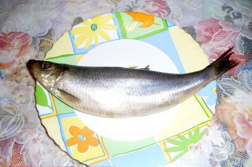 1. Для начала у селёдки удалим голову, разрежем ей брюхо, очистим от внутренностей и промоем под водой.