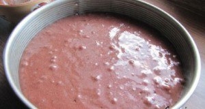 Шаг 1. Для бисквита взбиваем яйца с сахаром до увеличения массы в 3-4 раза. Муку смешиваем с какао и разрыхлителем, аккуратно, с помощью лопатки вмешиваем к взбитым яйцам, в конце добавляем растительное масло и всё вместе ещё раз аккуратно перемешиваем. Тесто выливаем в разъёмную форму 26 см, застеленную пекарской бумагой и выпекаем в разогретой до t 180 градусов духовке 35-45 минут. Готовность проверяем с помощью деревянной палочки.