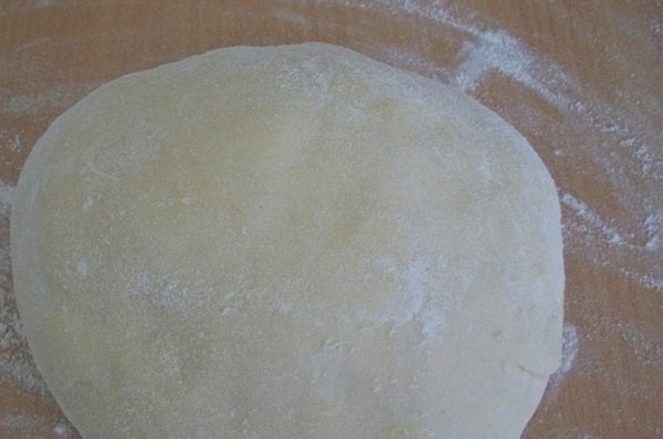 Шаг 3: Раскатать лепешку размером с форму для запекания, толщиной 5 мм. Выложить лепешку в форму для запекания, формируя бортики. В середину поместить начинку.