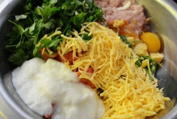 3. Добавить йогурт, яйцо и тертый сыр. Перемешать до однородной массы.