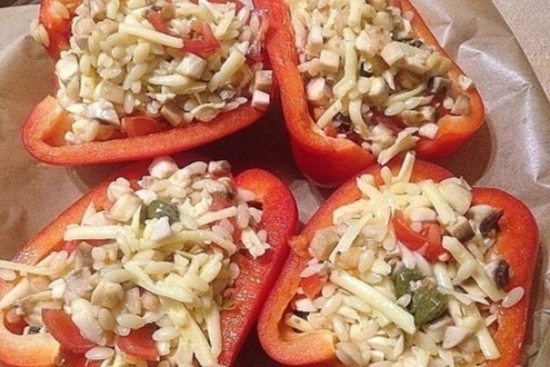 Чаще всего мы запекаем перец в духовке с рисом и мясным фаршем, я же предлагаю вам попробовать необычную начинку: вместо риса использовать макароны. Удивлены? А ведь макароны в виде рисовых зернышек используют не только как гарнир, с ними даже готовят вкусные салаты. Макароны "Орсо" или "Рисони" делают из твердых сортов пшеницы. Они сохраняют форму даже при длительной тепловой обработке. Готовим?