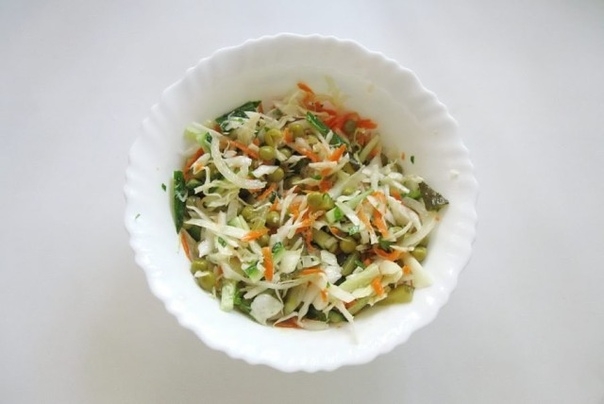 Простой салат с огурцом и зеленым горошком без майонеза