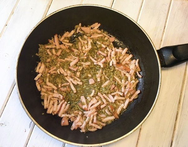 1. Балык нарезать тонкой соломкой и обжарить до румяного цвета. Оливки измельчить, добавить к балыку, добавить немного рассола и чистой воды.