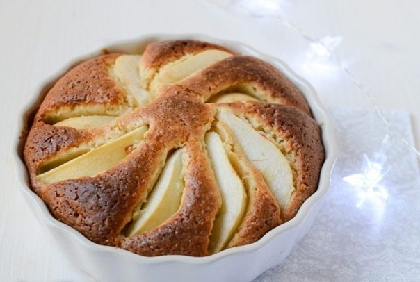 3. Груши очистить от кожуры и семян. Порезать на дольки. Равномерно распределить по форме и слегка вдавить в тесто.