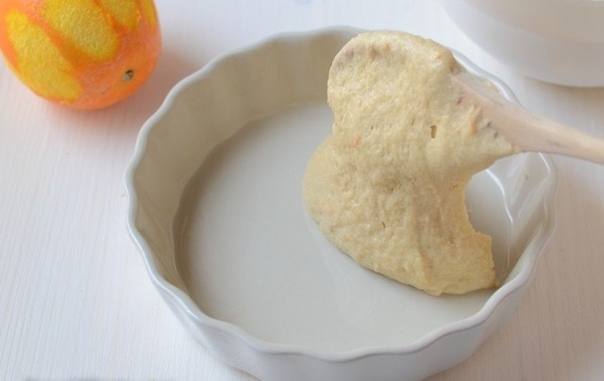2. Тесто выложить в форму. Должно быть заполнено не более 3\4 высоты формы. Разровнять.