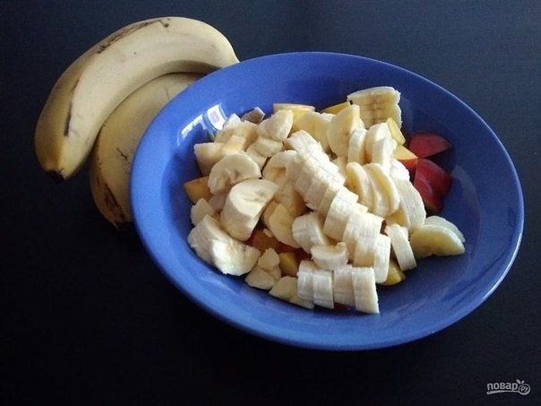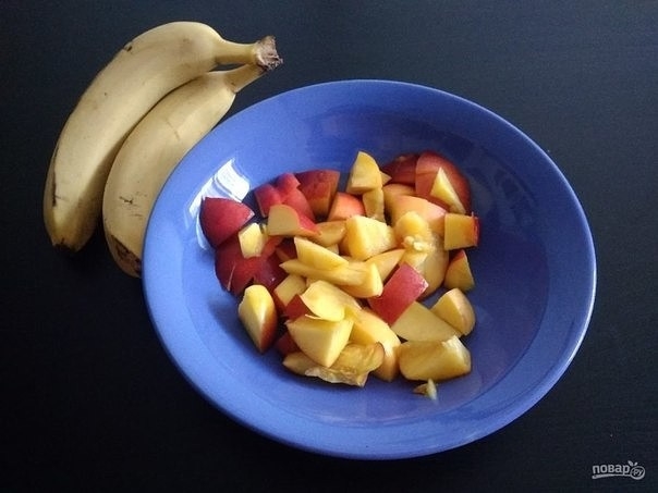 1. Сначала сделайте заправку. Йогурт перемешайте с мелкими кусочками шоколада (или сразу натрите шоколад).