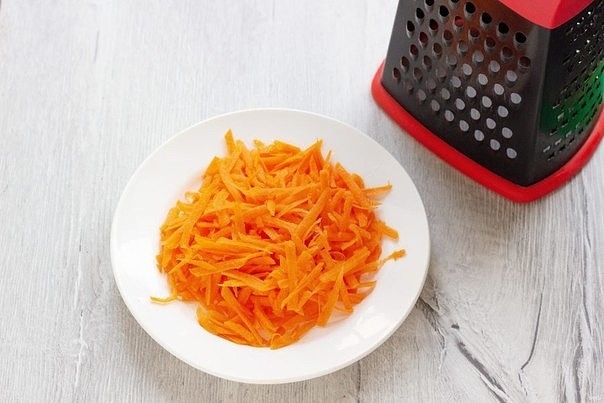 2. Начните с приготовления начинки. Морковь очистите и натрите на крупной терке.
