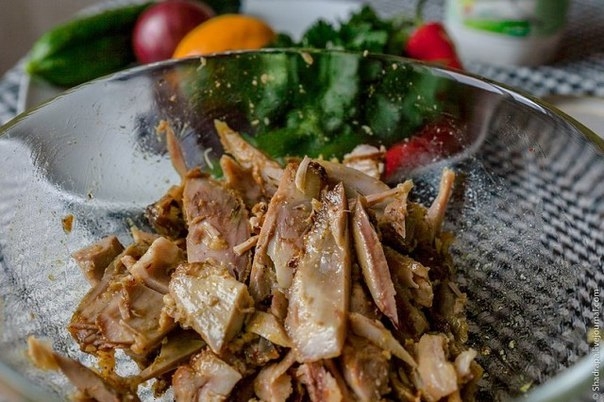 Не имеет решающего значения, какое вы выберете мясо для вашей шаурмы. Свинина, курятина, индейка, баранина – всё подойдет. Поскольку вы будете делать дома, для себя и своих близких, шаурма может стать идеальным способом утилизировать вчерашний шашлык, запеченое мясо или птицу. Я возьму курочку, что осталась от ужина.