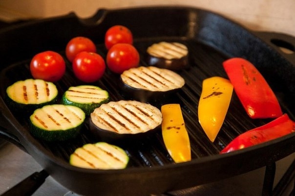 Обжарить овощи на гриле или сковороде-гриль с двух сторон до появления характерных полосочек.