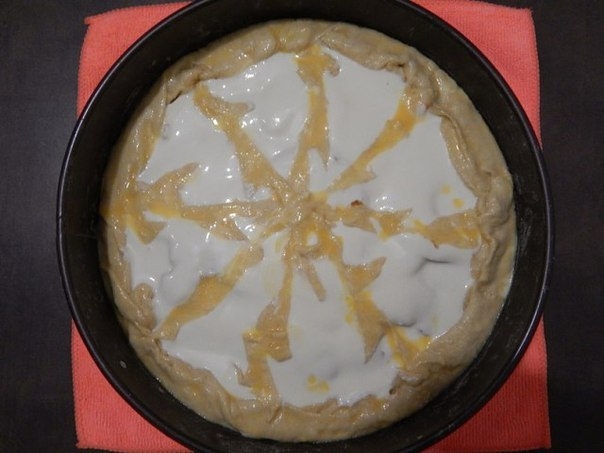 Защепить края пирога. Смазать пирог взбитым яйцом (1 шт.).