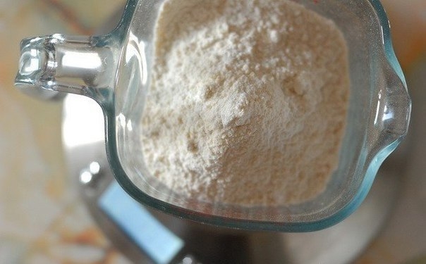 4. Возьмите тяжёлую вилку и, продавливая масло, интенсивно смешайте с мукой до образования крошки.