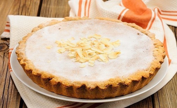 12. Уложите начинку и ставьте выпекаться около 50–60 минут при 190 градусах на верхней полке. Остывший пирог можно украсить сахарной пудрой, банановыми чипсами или тёртым шоколадом.