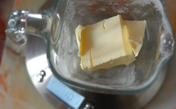3. Добавьте холодное сливочное масло и порубите его ножом.