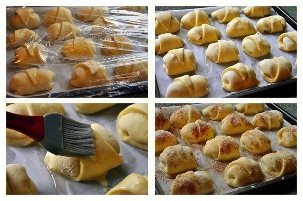 11. Взбила 1 яйцо с одной столовой ложкой воды и смазала рогалики. Сверху посыпала их сахаром и корицей.