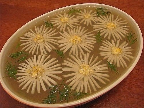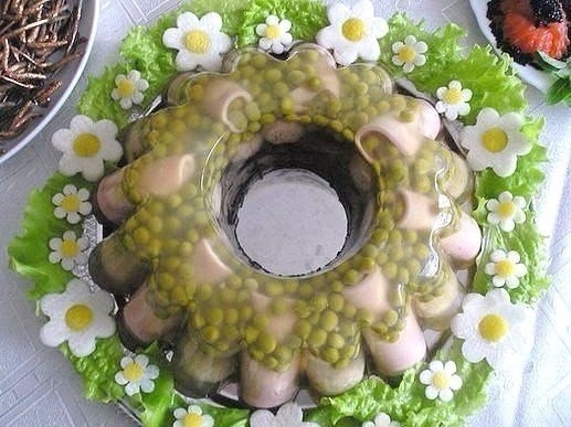 из овощей добавляла в холодец морковку и лук, луковичку пришлось выбросить, а вот морковка очень даже ничего была - порезала для украшения.
