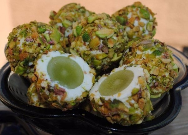 4. Скатать из сырной массы шарики, положив начиненную оливку внутрь каждого шарика.