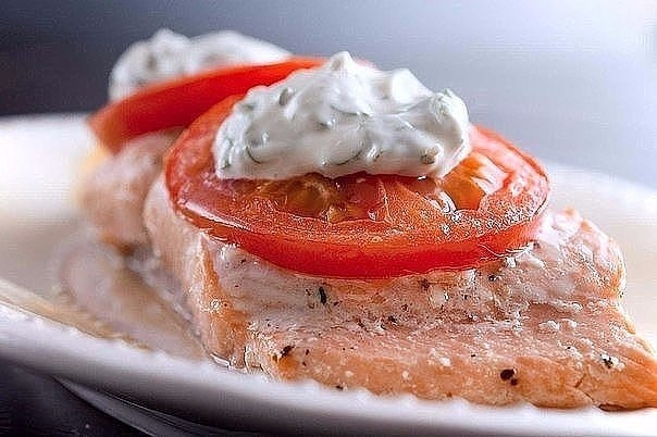 9. Горбуша, запеченная в сметанно-грибном соусе