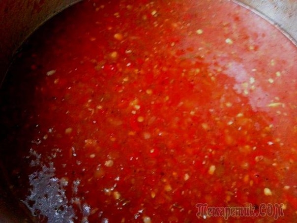 Выложить в кастрюлю, добавить кориандр, зиру, мяту, соль, сахар, уксус и варить от момента закипания на медленном огне 15-20 минут.