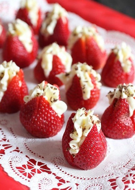 Предлагаем отказаться от традиционной клубники в шоколаде или со сливками и попробовать нечто новое, оригинальное и вкусное – фаршированную клубнику. Такой десерт будет не слишком калорийным в силу своих размеров, зато принесёт массу удовольствия.