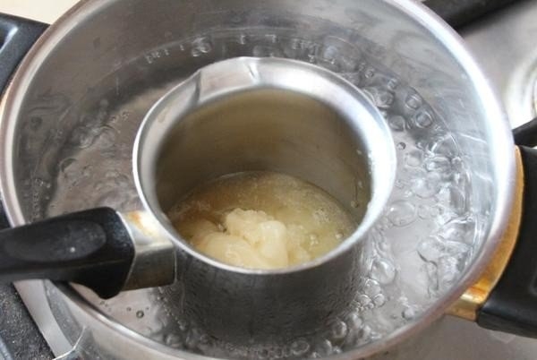 1. На водяной бане растопить 150 г меда.