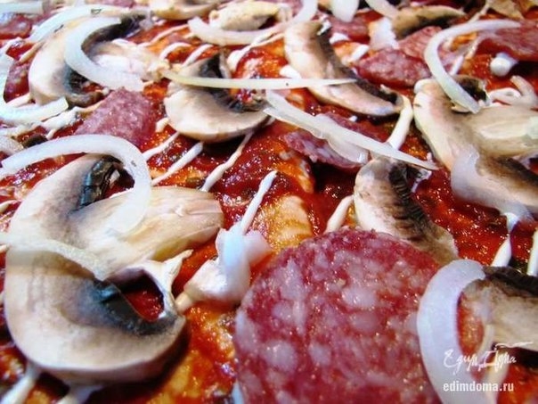 Через пять минут по кухне плывут вкуснейшие ароматы, через 10 минут - тончайшая пицца уже готова.