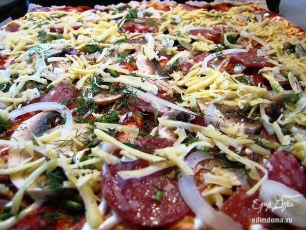 Выложила нашу начинку. И начинка, и густота выкладывание - все очень индивидуально. Я люблю не слишком густо, не в три ряда.