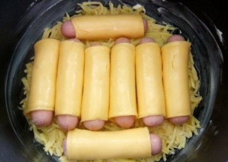 КАРТОФЕЛЬНАЯ ЗАПЕКАНКА С СОСИСКАМИ И СЫРОМ В МУЛЬТИВАРКЕ