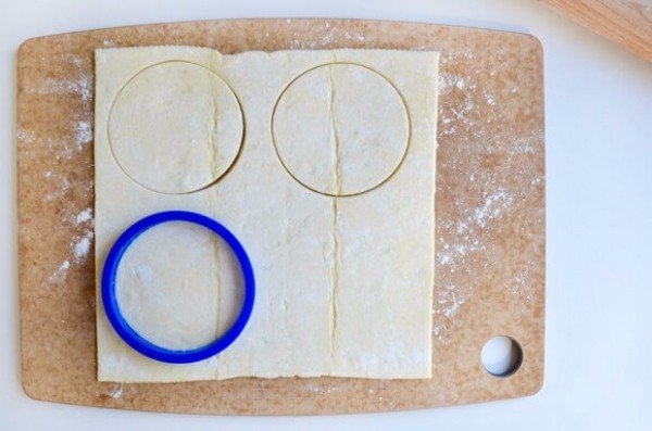 Посыпь мукой рабочую поверхность, разложи на ней тесто и слегка раскатай. Выемкой (можешь воспользоваться чашкой или стаканом) сделай заготовки тарталеток. Разложи их на противне, застеленным пергаментом, на расстоянии 2 см друг от друга.
