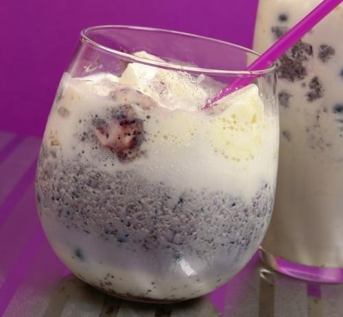 Возьми нежирный творог – 400 гр., чернику – 100 гр., мед или коричневый сахар – 20 гр. Творог, чернику и растворенный сахар или жидкий мед взбить в блендере. Если творог сухой, можешь добавить немного молока. Вместо черники подойдут и любые другие ягоды. Полученная масса представляет собой замечательный десерт. Вкусно, быстро и полезно.