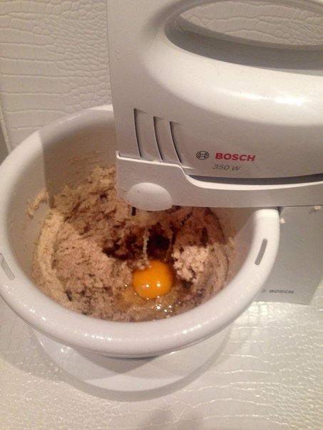 1. Сливочное масло комнатной температуры взбиваем с коричневым сахаром до воздушного состояния. Не переставая взбивать, добавляем яйцо.