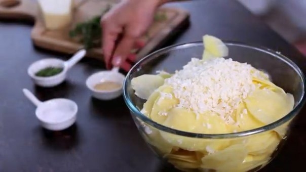 Повар кладет картошку в формочки для кексов. Когда она достала ее из печи, гости озадачились…Все перемешай. Чувствуешь, как пахнет?