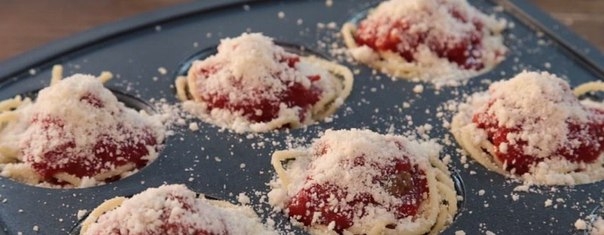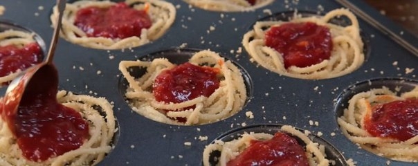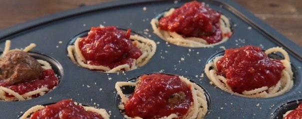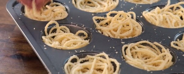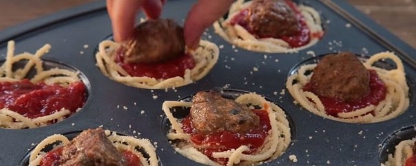 ОНА ПРОСТО ВЫЛОЖИЛА СПАГЕТТИ В ФОРМУ ДЛЯ КЕКСОВ. В РЕЗУЛЬТАТЕ ПОЛУЧИЛОСЬ СУПЕР КРАСИВОЕ БЛЮДО!