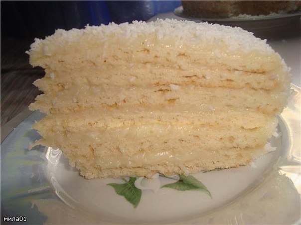 Коржики выпекать несколько минут. Пока коржи еще теплые, смазать их кремом. Посыпать кокосовой стружкой.