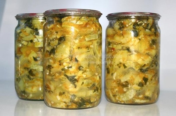 Еще один интересный рецепт заготовки на зиму из кабачков. Только здесь кабачки лучше брать молодые, пока у них еще нежная кожица.