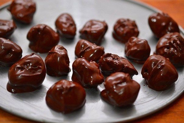 6.Аккуратно достаньте конфету с помощью двух вилок или зубочисток и положите на тарелку, смазанную заранее сливочным маслом. Уберите их в холодильник и подождите, пока застынет шоколад.