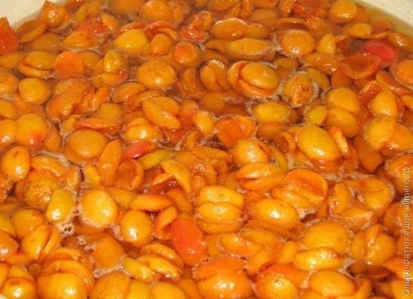 И в третий раз повторяю эту процедуру. Фрукты были чуть зеленоватые, с плотной мякотью, поэтому без особых усилий половинки абрикос остались целыми, не разварились.