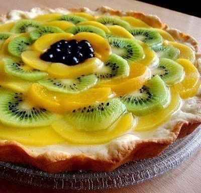 Из фруктов и ягод можно выложить красивый орнамент или признание в любви, написать возраст именинника или короткое пожелание. Такой десерт можно готовить в любое время года, если вы заморозите летом фрукты и ягоды в морозилке. Так же верх такого пирога можно выложить консервированным ананасом или добавить орехи при оформлении. С оформление можно экспериментировать много и даже если у вас нет ни фруктов, ни ягод, верх пирога можно просто залить желе и засыпать тёртым шоколадом или какао.