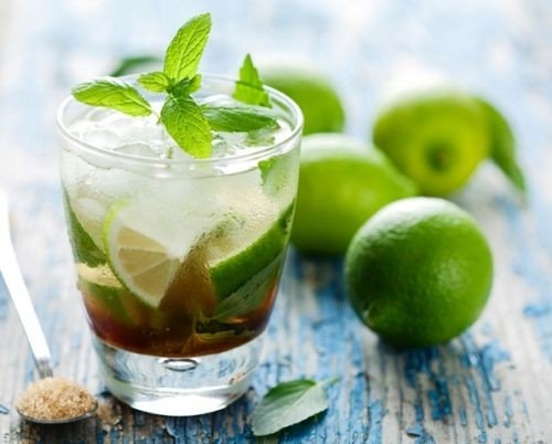 Ингредиенты: тростниковый сахар – 3 ч.л., ром – 50 мл, мята – 1 пучок, лайм – 1 шт., «Спрайт» – 150 мл, лед.